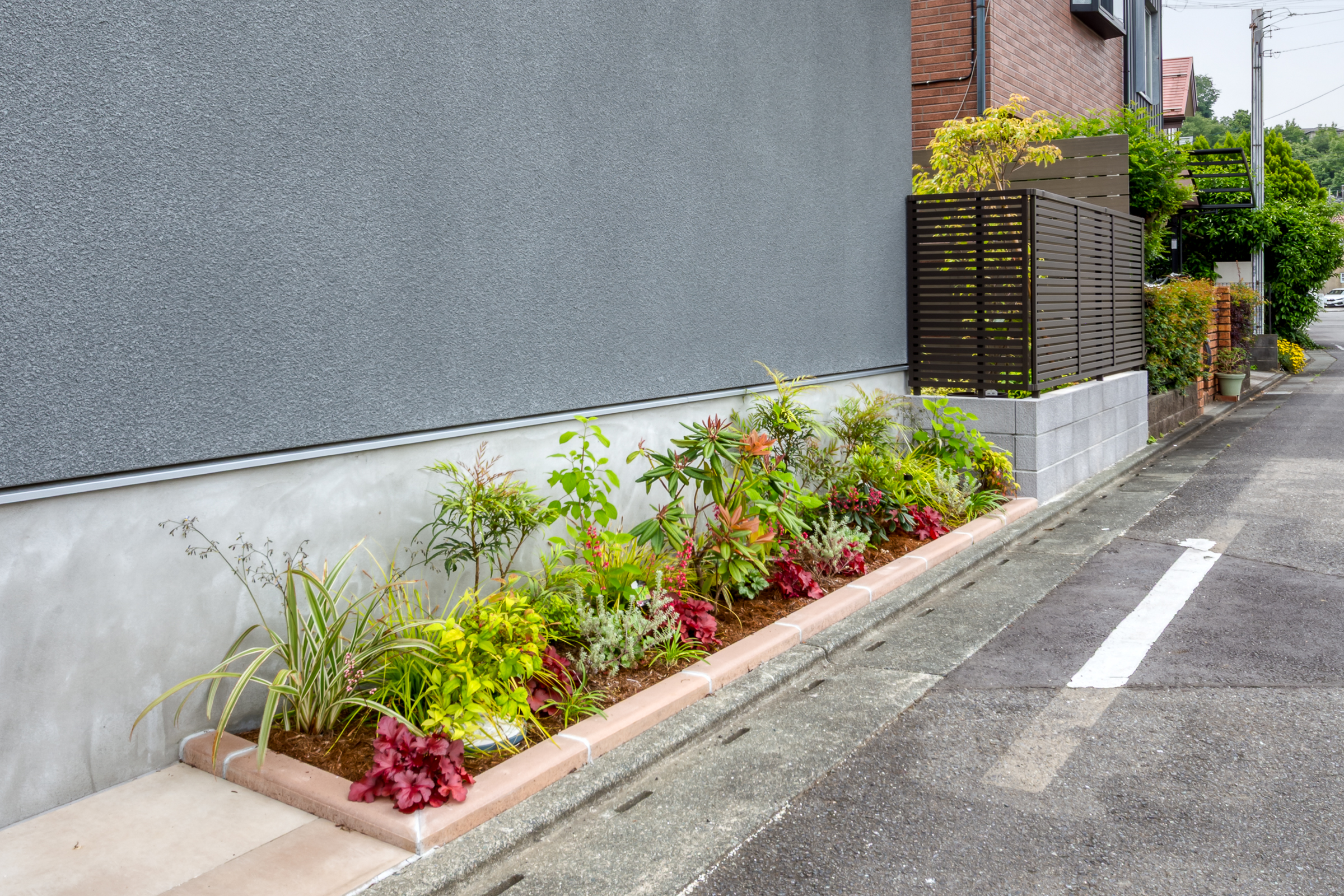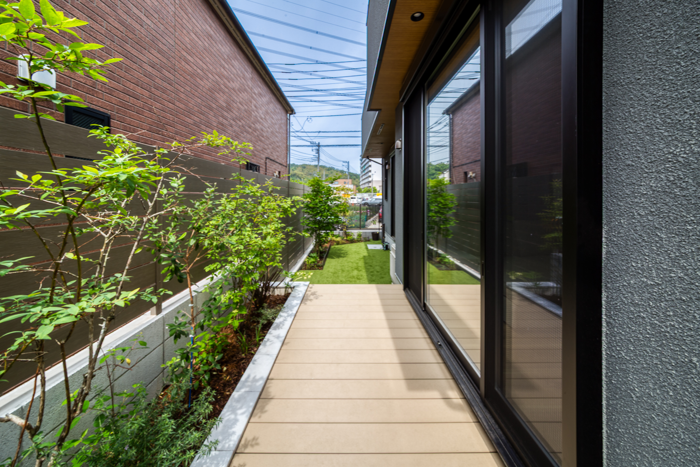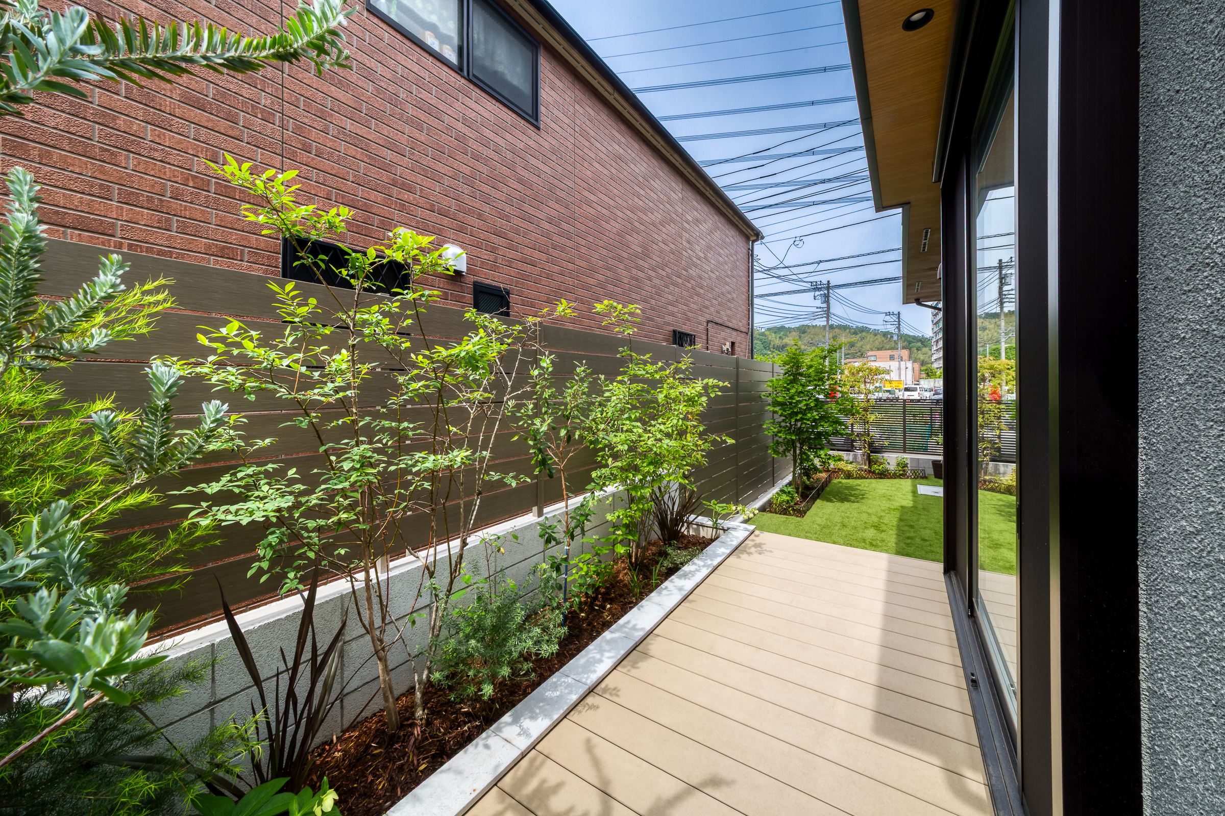 ・デッキと同レベルに花壇を配置し、眺望性とメンテナンス性を両立