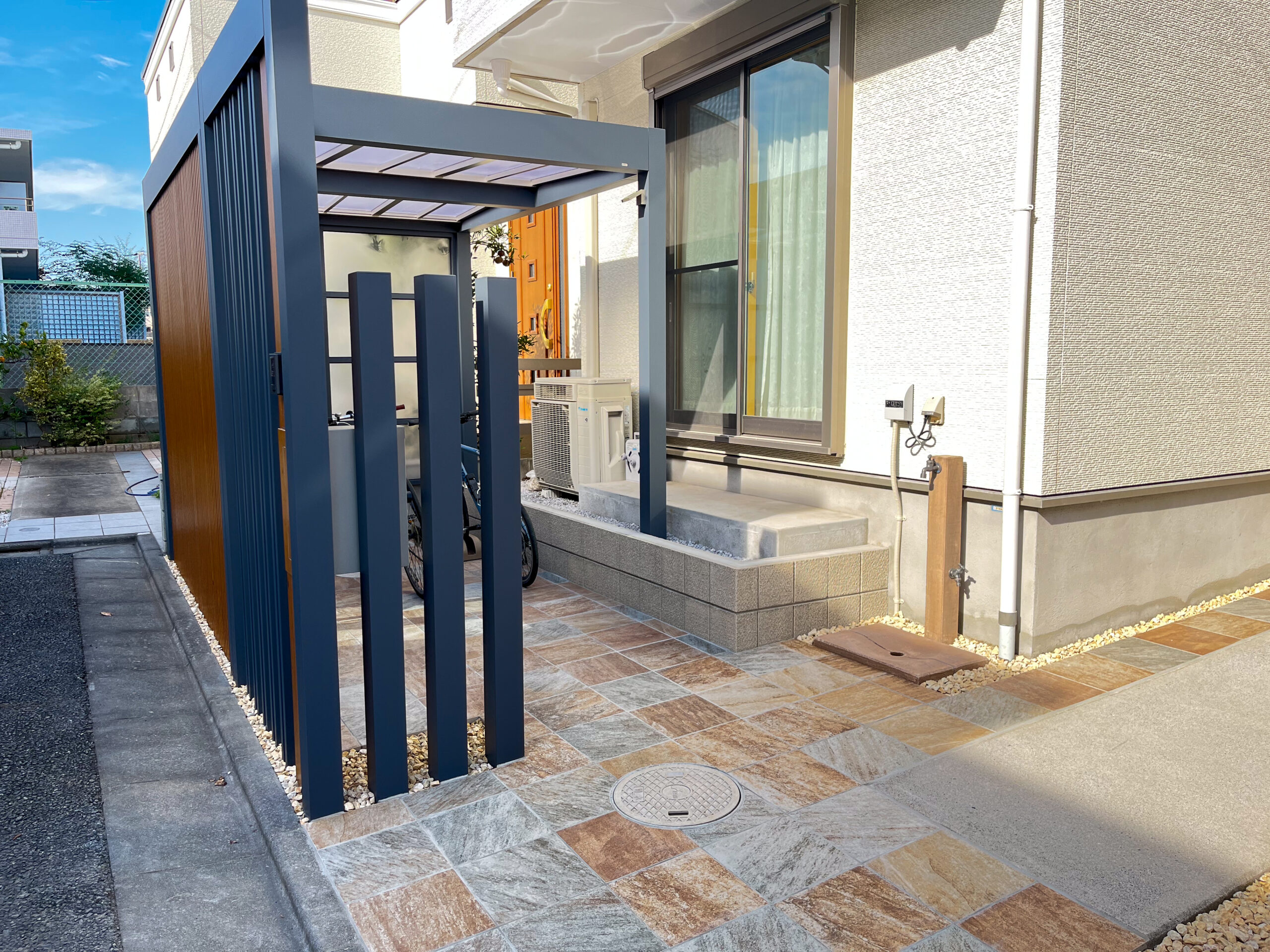 自転車置場と目隠しを一体化した機能的外構リフォーム