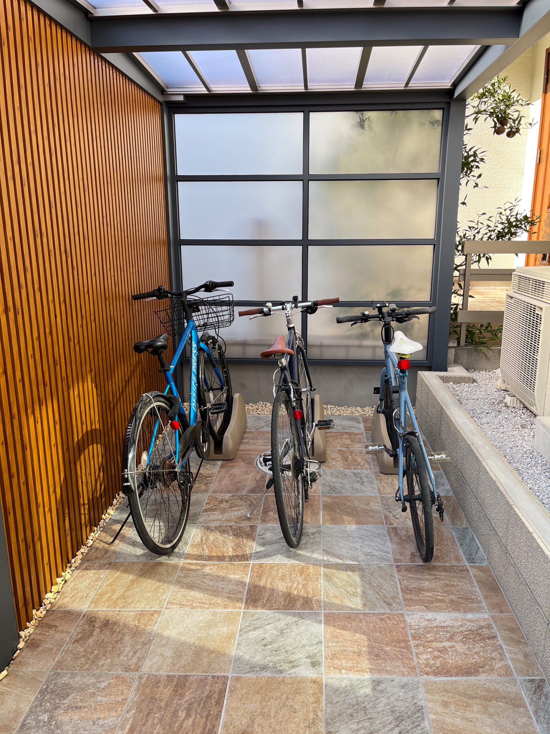 以前は車を置くスペースに簡易的な自転車屋根を設置されていましたが、