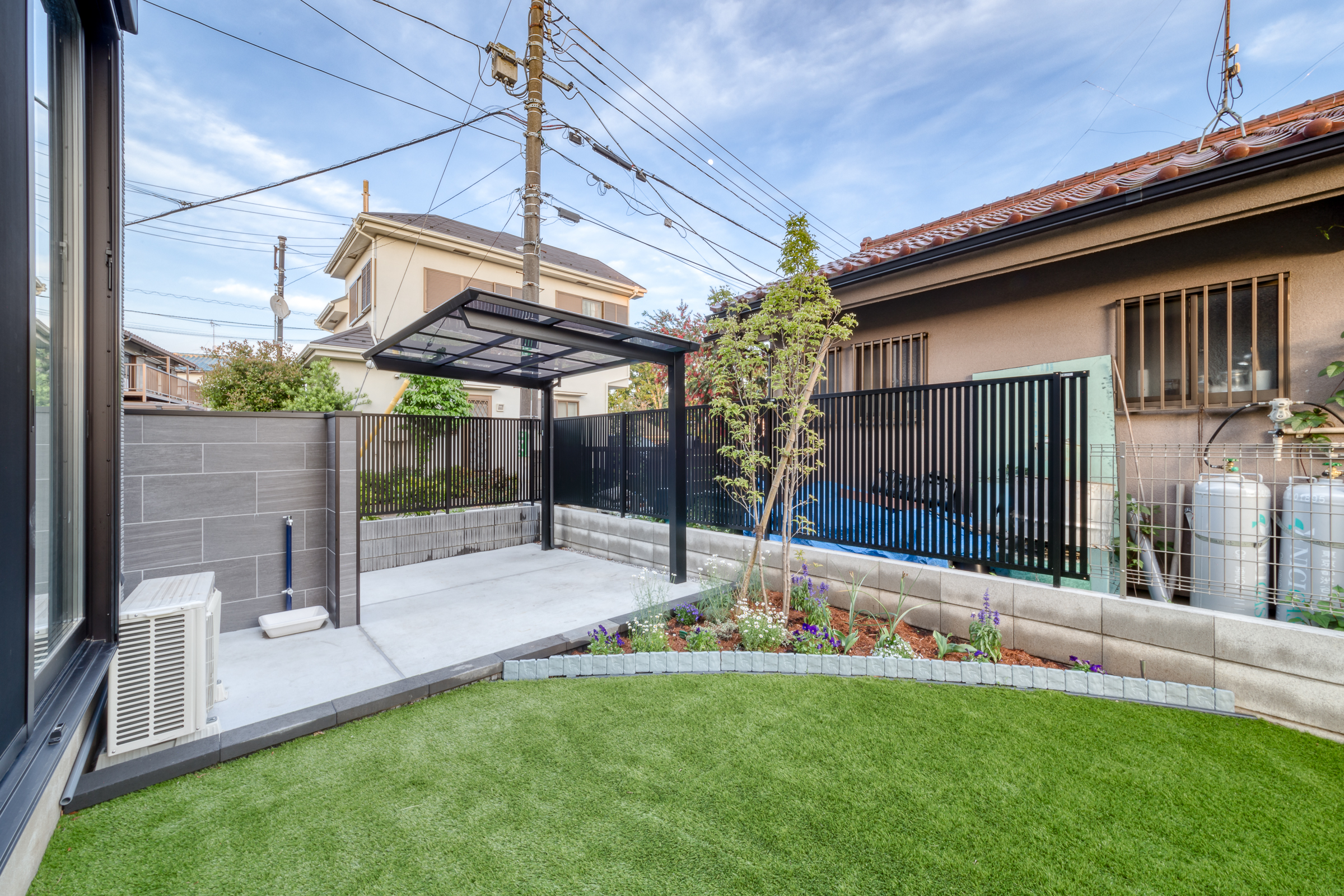 お庭にはクッション性の高い40mmの人工芝を採用。