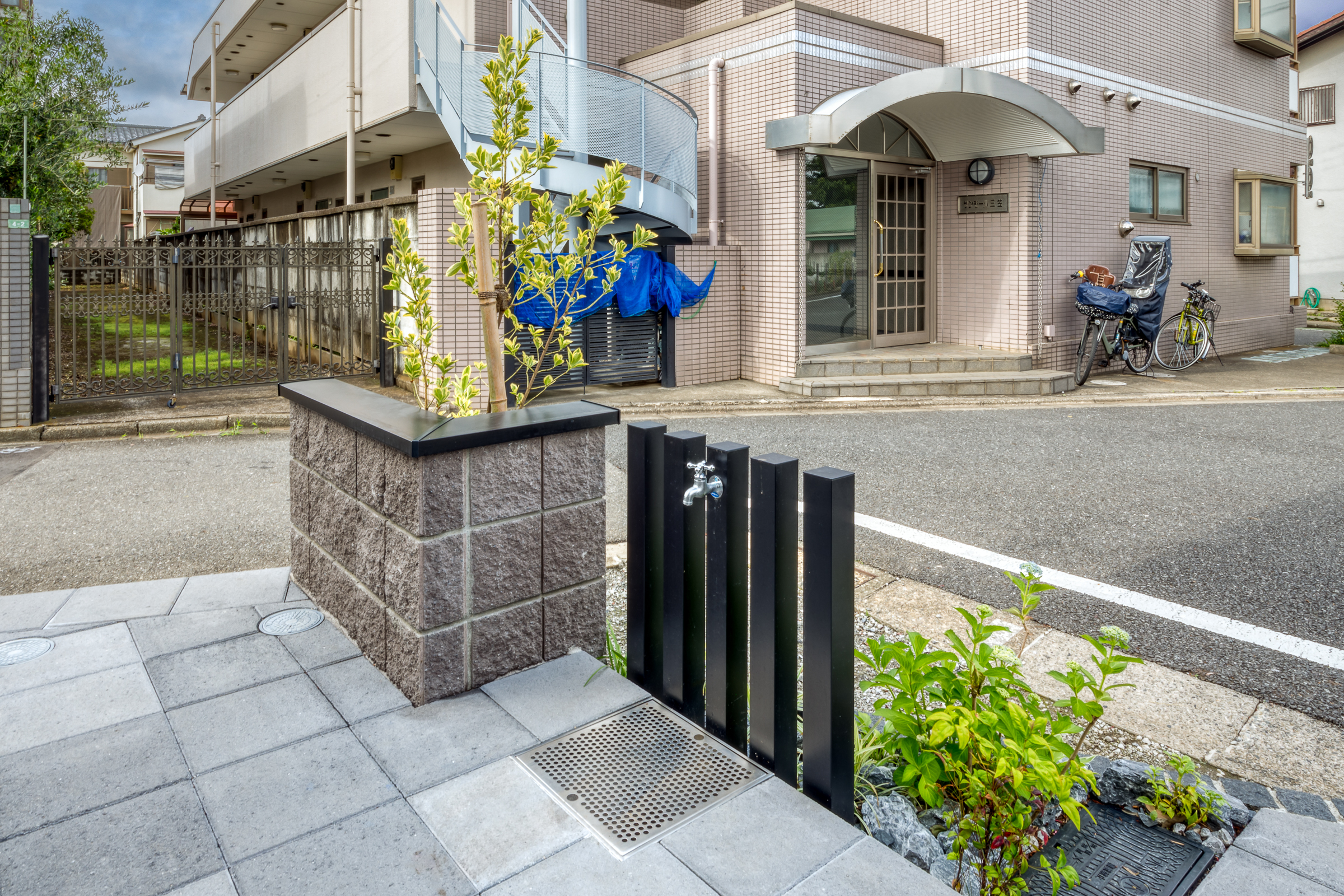サイクルポートの設置や、照明・立水栓の設計にも細やかな配慮。